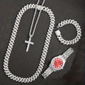 Elevate your streetwear accessories collection with the Men's Rhinestone Watch & Cross Jewelry Set. Own your style, make a statement, and let your confidence shine through. Get yours today and redefine fashion on your terms!