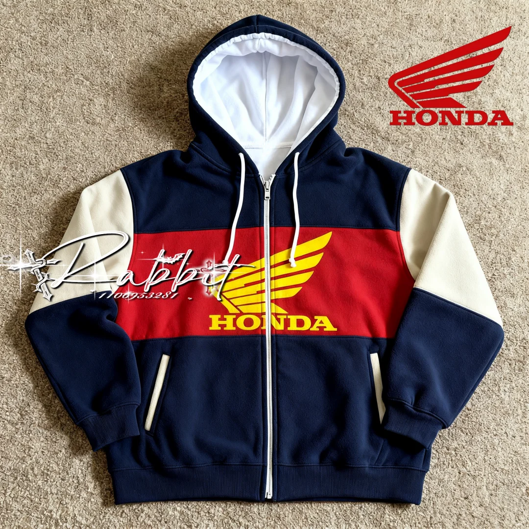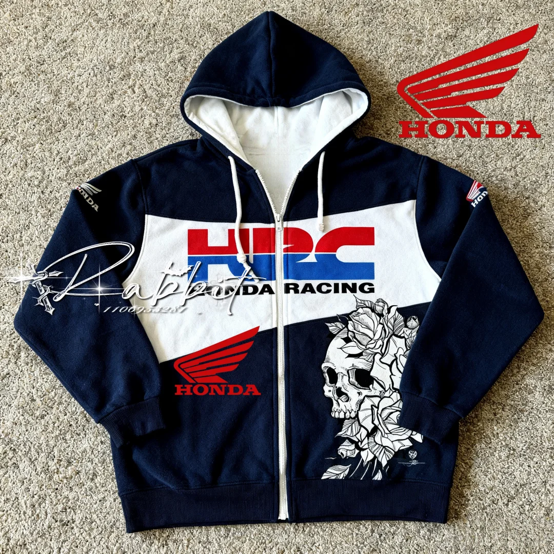Autumn and Winter Full New Honda HRC Racing Fashion Design Hoodie Off-road Enthusiasts Retro Motorcycle Suit Zipper Hoodie