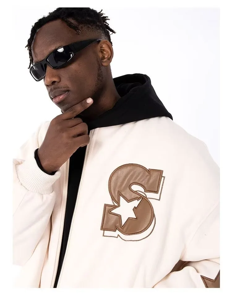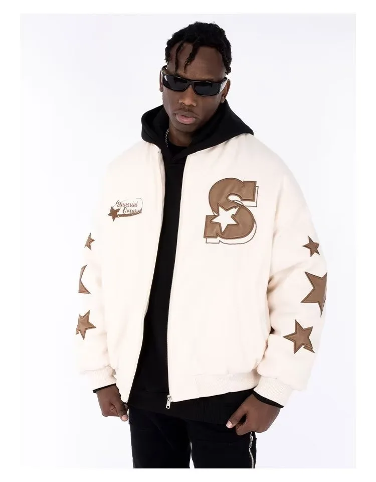 Men Baseball Jacket Loose Casual Stand Collar Trendy New Jacket Street Letter Embroidered Stand Up Collar Jacket