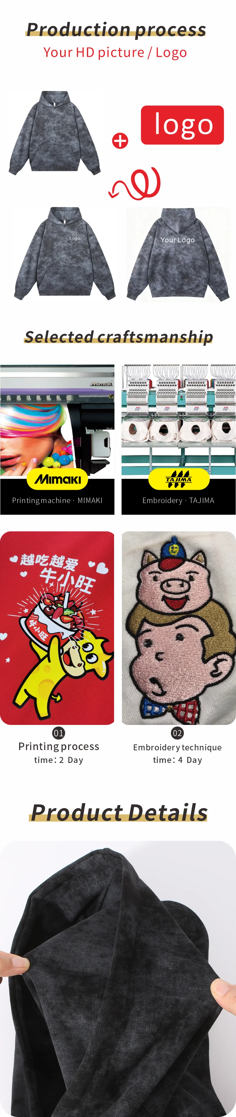 Retro and versatile wax printed hooded sweatshirt trendy customization logo printing embroidery